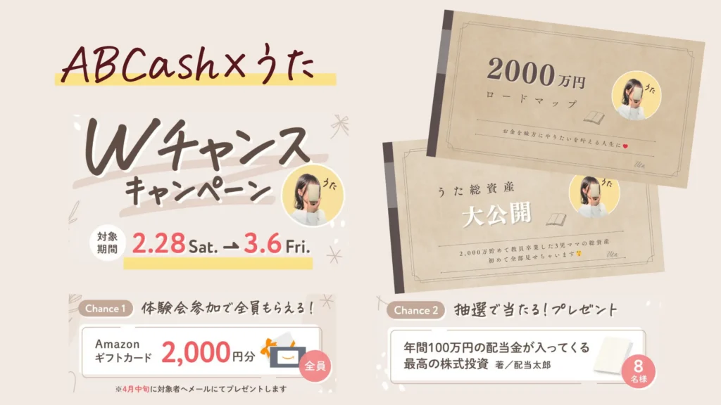 【3/6までの期間限定🎁】豪華特典GETできる!ABCash×うたコラボ神キャンペーン🎉