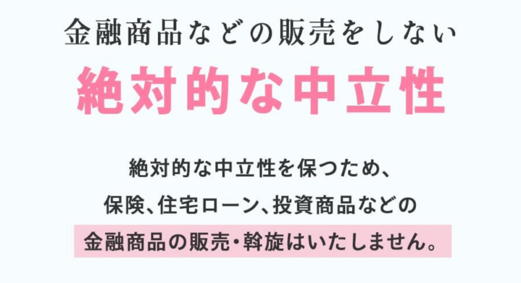• 商品の勧誘が一切ない(中立的なアドバイス)