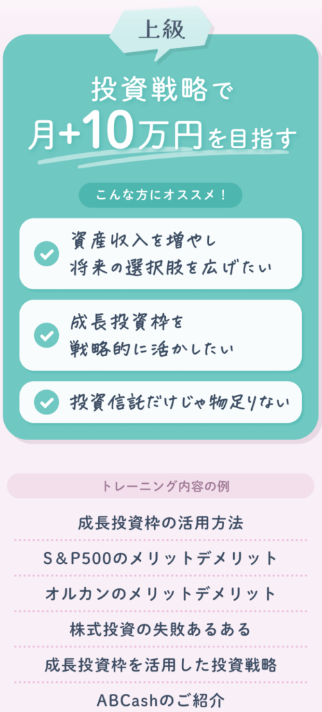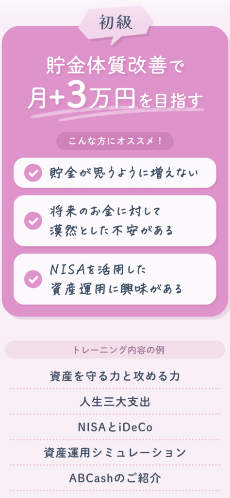 ABCashは「貯金」から「投資」まで学べるお金のパーソナルトレーニングをしてくれるところ☝️